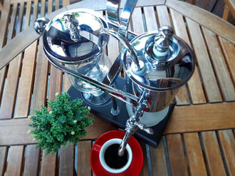 Częściowo zmielone ziarna zalewa się wrzątkiem i przesącza przez materiałowe sitko, zwane pieszczotliwie „skarpetką”, do metalowego dzbanka z długim i wąskim dzióbkiem., z wyglądu przypominającego konewkę. Cały ten proces parzenia wygląda niezwykle widowiskowo, więc warto poszukać lokalu, gdzie tak parzy się kawę. My taki znaleźliśmy w Singapurze.